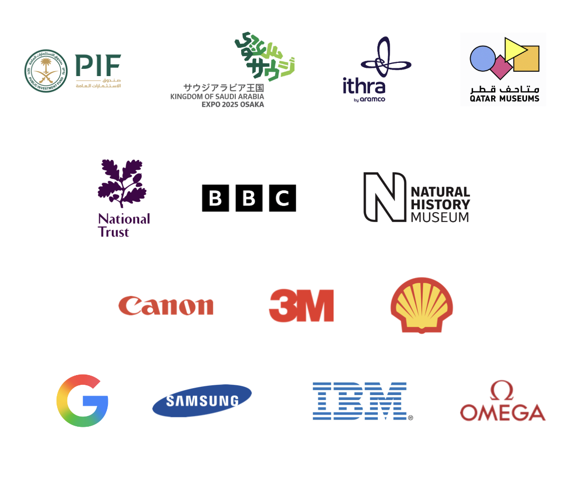 Past clients include The Ministry of Culture, Ithra, Qatar Museums, The BBC, The National Trust and The Natural History Museum, London.